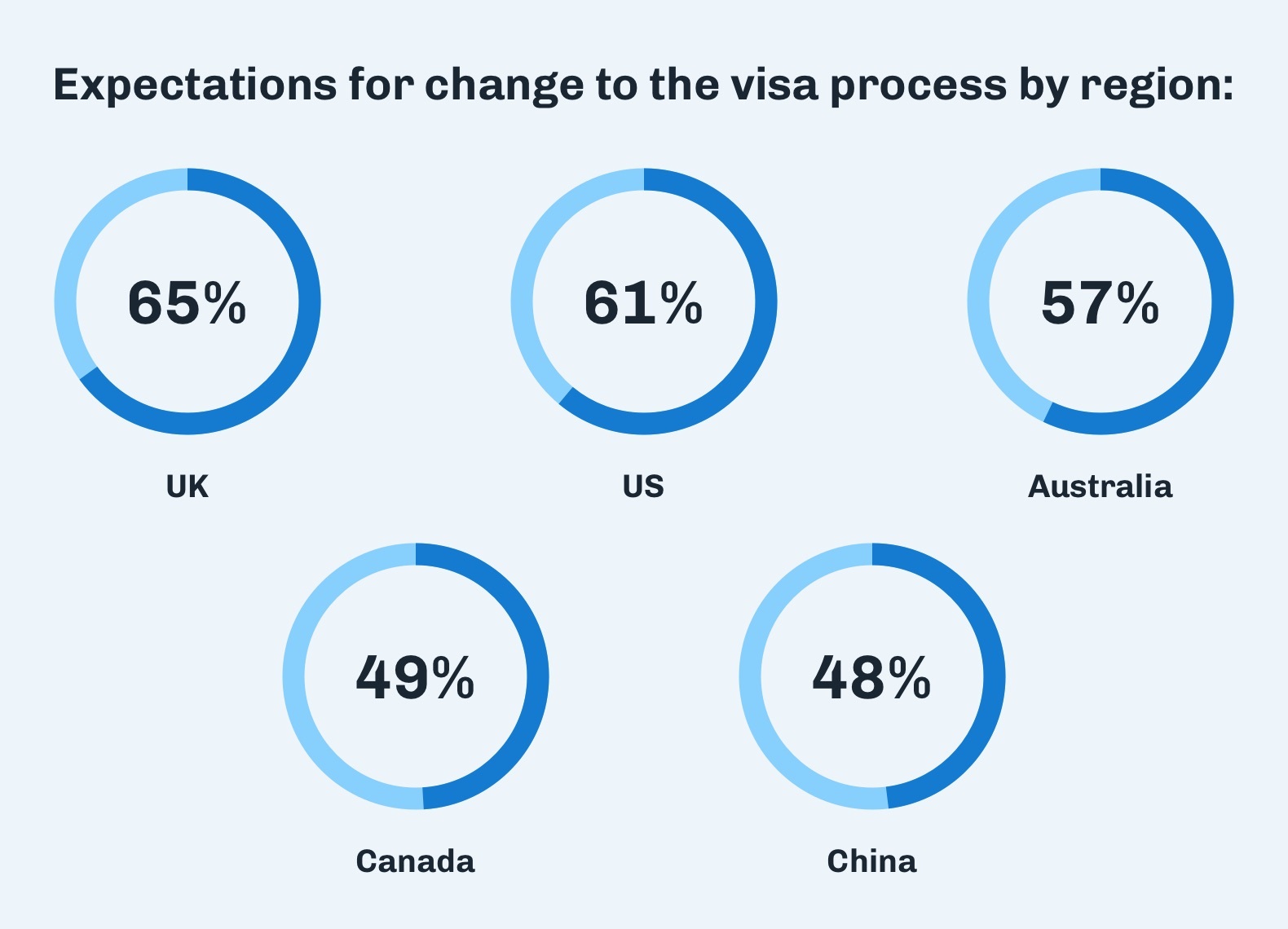 China saw a larger percentage (41%) of students thinking that the process to get a visa will remain the same. The confidence in China’s stability could potentially be attributed to its growing prominence on the world stage.