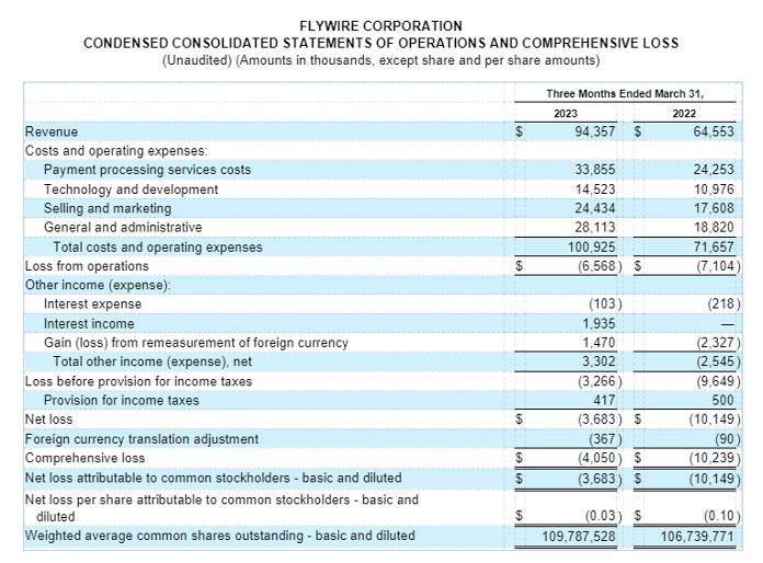Boston, MA – May 9, 2023: Flywire Corporation (Nasdaq: FLYW) (“Flywire” or the “Company”) a global payments enablement and software company, today reported financial results for its first quarter ended March 31, 2023.