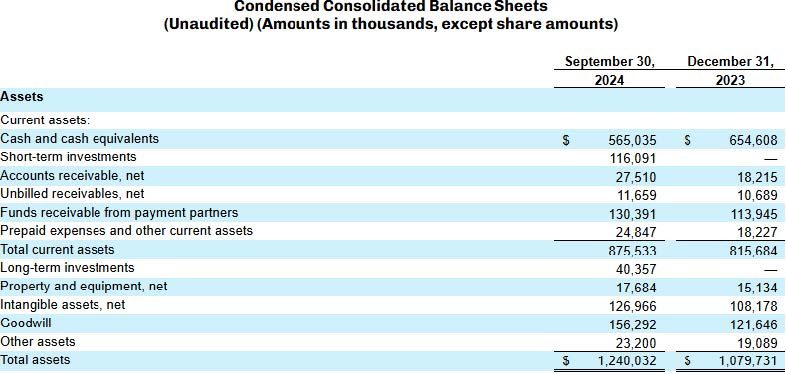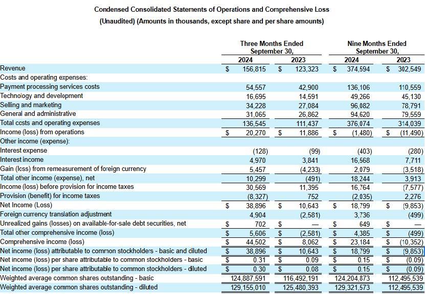 • Total Payment Volume increased 24.2% to $11.0 billion in the third quarter of 2024, compared to $8.9 billion in the third quarter of 2023.